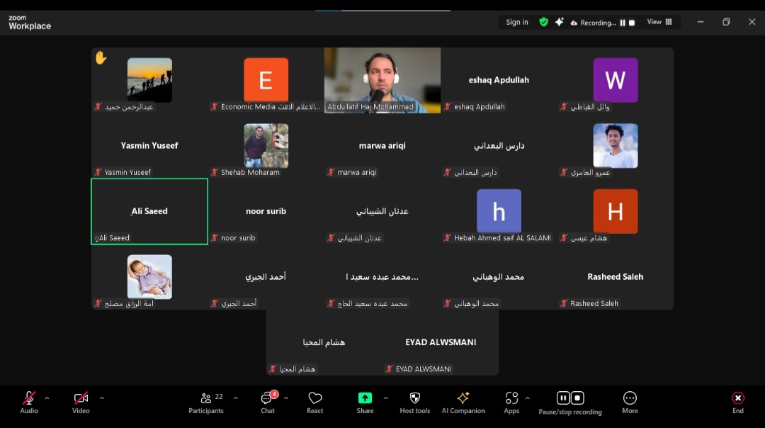 من جانبه، أوضح عبد اللطيف حاج محمد، الرئيس التنفيذي لشبكة الصحافة والذكاء الاصطناعي في الشرق الأوسط وشمال أفريقيا، ومدرب الدورة، أن الورشة لم تكن تدريباً تقنياً فحسب، بل تجربة فكرية وعملية لإعادة تعريف العلاقة بين الصحافة والتكنولوجيا في سياق يمني متحول، مؤكداً أن هذه الورشة تمثل خطوة تأسيسية في بناء قدرات إعلامية يمنية قادرة على استيعاب التحول الرقمي ومواكبته من موقع الفاعل لا المتفرّج، وأنها ستفتح الطريق أمام برامج تدريبية أكثر تقدماً ضمن مسار شراكة استراتيجية بين مركز الدراسات والإعلام الاقتصادي وشبكة الصحافة والذكاء الاصطناعي في الشرق الأوسط وشمال أفريقيا.