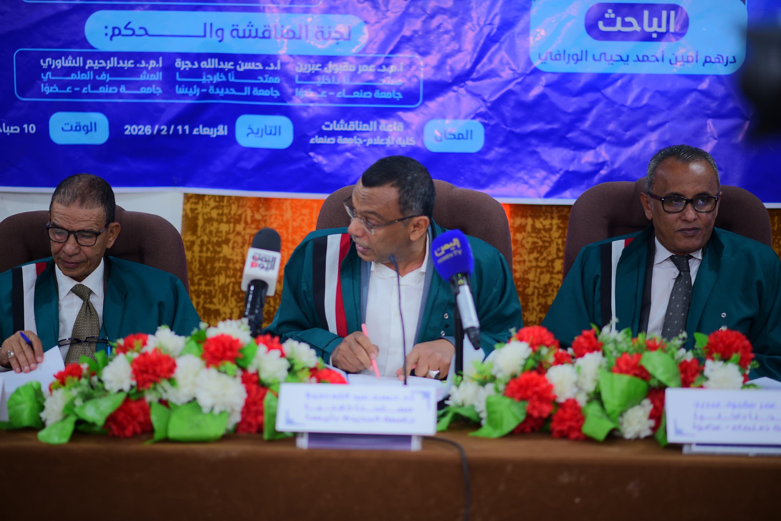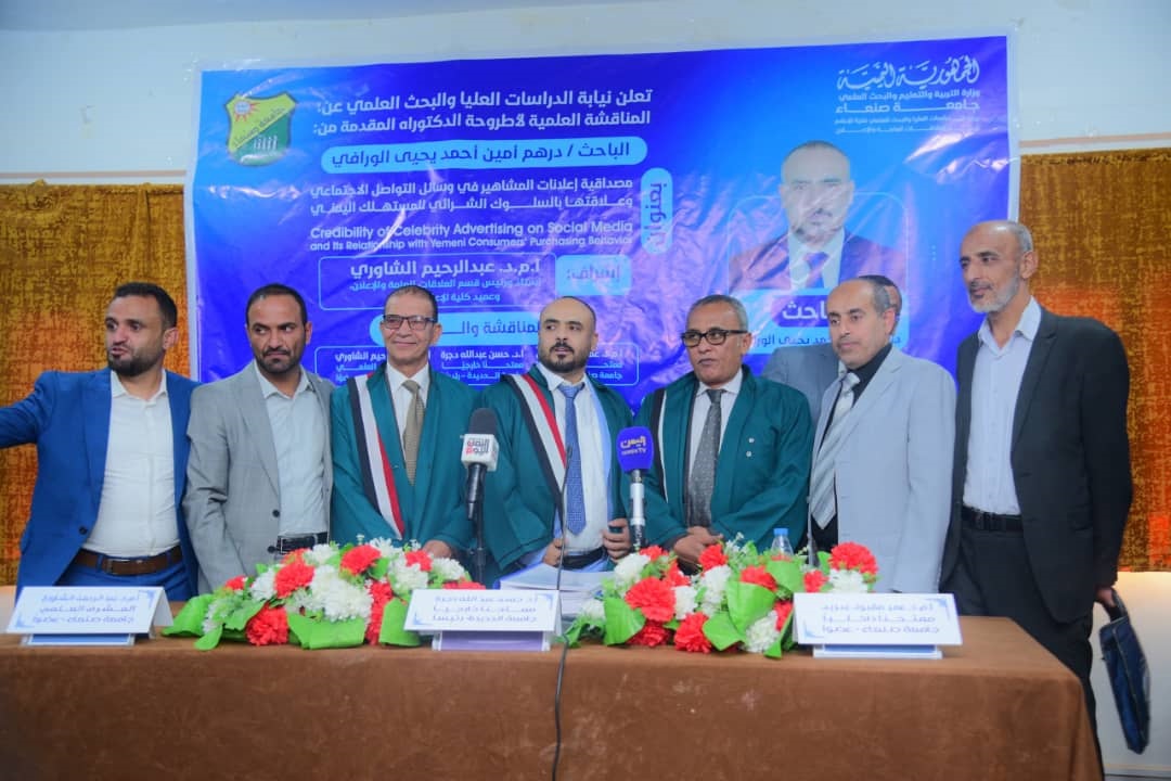 وأشادت اللجنة بما تضمنتة الأطروحة من معالجة علمية ومنهجية لموضوع مصداقية إعلانات المشاهير في وسائل التواصل الإجتماعي وعلاقتها بالسلوك الشرائي للمستهلك اليمني وما تمثلة من إضافة نوعية في مجال الإعلام الرقمي ..