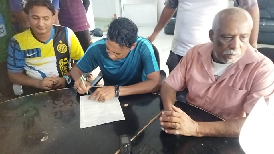 حيث جرت مراسيم العقد في مقر إدارة النادي بحضور المشرف الرياضي الدكتور / خالد علي البرعي وعضو مجلس الإدارة الأستاذ / علي باري جرب ومدير عام النادي عبدالله عطا ومدرب حراس الفريق الأول الكابتن هاني جيزاني وإداري الفريق محمد داوود وعناصر الفريق الأول بالنادي