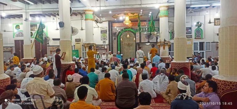وبعد صلاة المغرب – قبل تناول وجبة العشاء – يخرج الناس للصلاة والاستماع إلى خطب الخطباء ومحاضراتهم وقصائد الشعراء ومنظوماتهم، وفي بعض المساجد يقتصرون على قراءة أحد الموالد الخاصة كمولد “الميرغني” أو “الديبع “أو “العزب” أو ” الحريري” ، ويتبرع بعض الناس بالبخور والعطور للمسجد والحاضرين، ثم يصلون العشاء، ويعودون إلى المنازل لتناول وجبة العشاء.