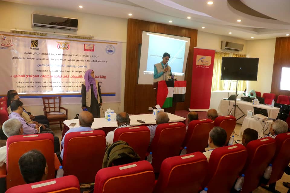 عُقدت بمحافظة الحديدة، اليوم، ورشة عمل في بناء قدرات المنظمات المحلية، نظمتها مؤسسة “يمن هوية” للتنمية بالتنسيق مع فرع المجلس الأعلى لإدارة وتنسيق الشئون الإنسانية ومكتب الشئون الاجتماعية والعمل بالمحافظة.