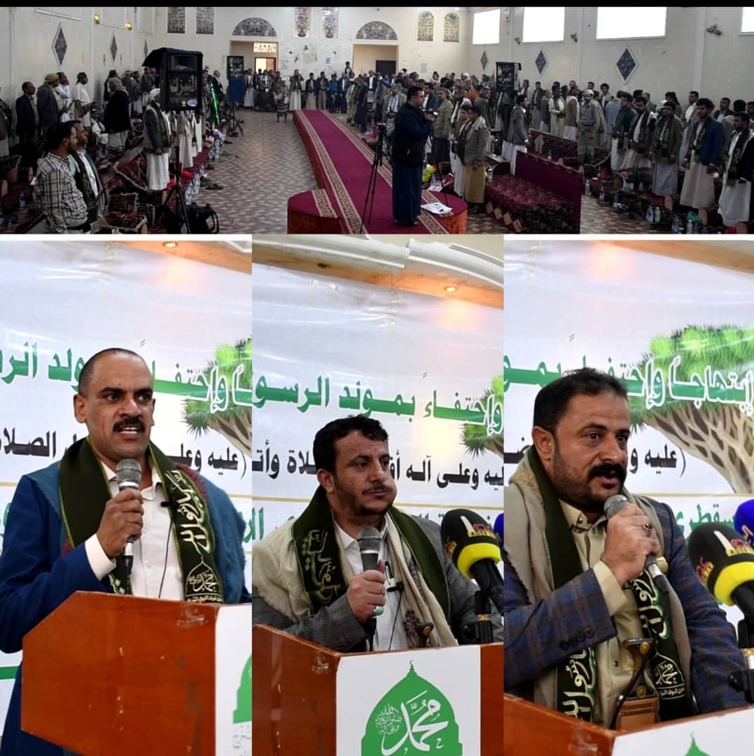 من جانبه أشار محافظ سقطرى هاشم سعد السقطري إلى أن أبناء سقطرى وفي مقدمتهم قيادات ووجهاء المحافظة، يحيون هذه الفعالية من صنعاء الصمود والتاريخ والحضارة، ويستلهمون من خلالها كل الدروس والقيم النبيلة من سيرة الرسول الأعظم المليئة بالنور والهدى.