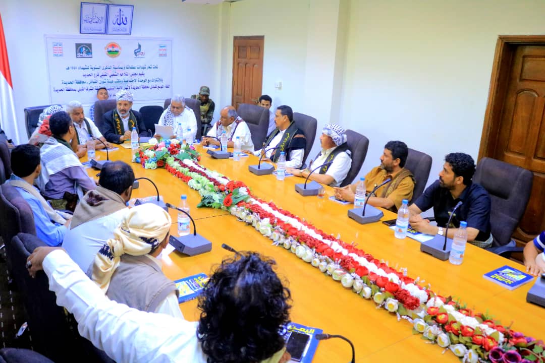 عقد صباح اليوم بمحافظة الحديدة وتحت شعار (شهدائنا عظمائنا وبمناسية الذكرى السنوية للشهيد ) اللقاء الموسع لمشائخ التلاحم القبلي والذي اقامه مجلس التلاحم الشعبي القبلي بالمحافظة بالاشتراك مع الوحدة الإجتماعية ومكتب هيئة شؤون القبائل لإشهار الآلية التنفيذية لوثيقة الشرف القبلي بمحافظة الحديدة وحضره الشيخ/ضيف الله رسام نائب رئيس مجلس الشورى رئيس التلاحم القبلي والأستاذ/محمد عياش قحيم محافظ المحافظة ووكيلا المحافظة الاستاذ/محمد سليمان حليصي والأستاذ علي قشر والشيخ/ابراهيم الشراعي مدير عام مكتب هيئة شؤون القبائل بمحافظة الحديدة ورئيس فرع مجلس التلاحم القبلي الشيخ/راجحي زليل ومشائخ أعضاء المجلس بالمحافظة.