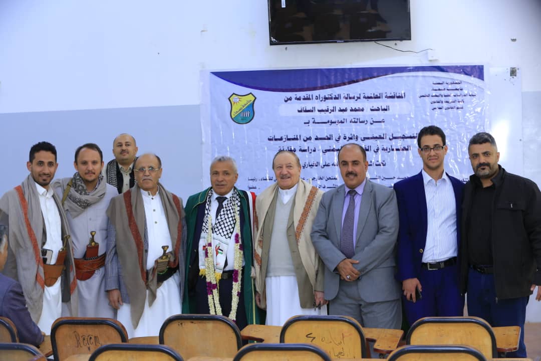 حصل الباحث والمحامي محمد عبدالرقيب السقاف درجة الدكتوراه من كلية الشريعة والقانون بجامعة صنعاء عن أطروحته الموسومة بـ “التسجيل العيني وأثره في الحد من المنازعات العقارية في القانون اليمني .. دراسة مقارنة”.
