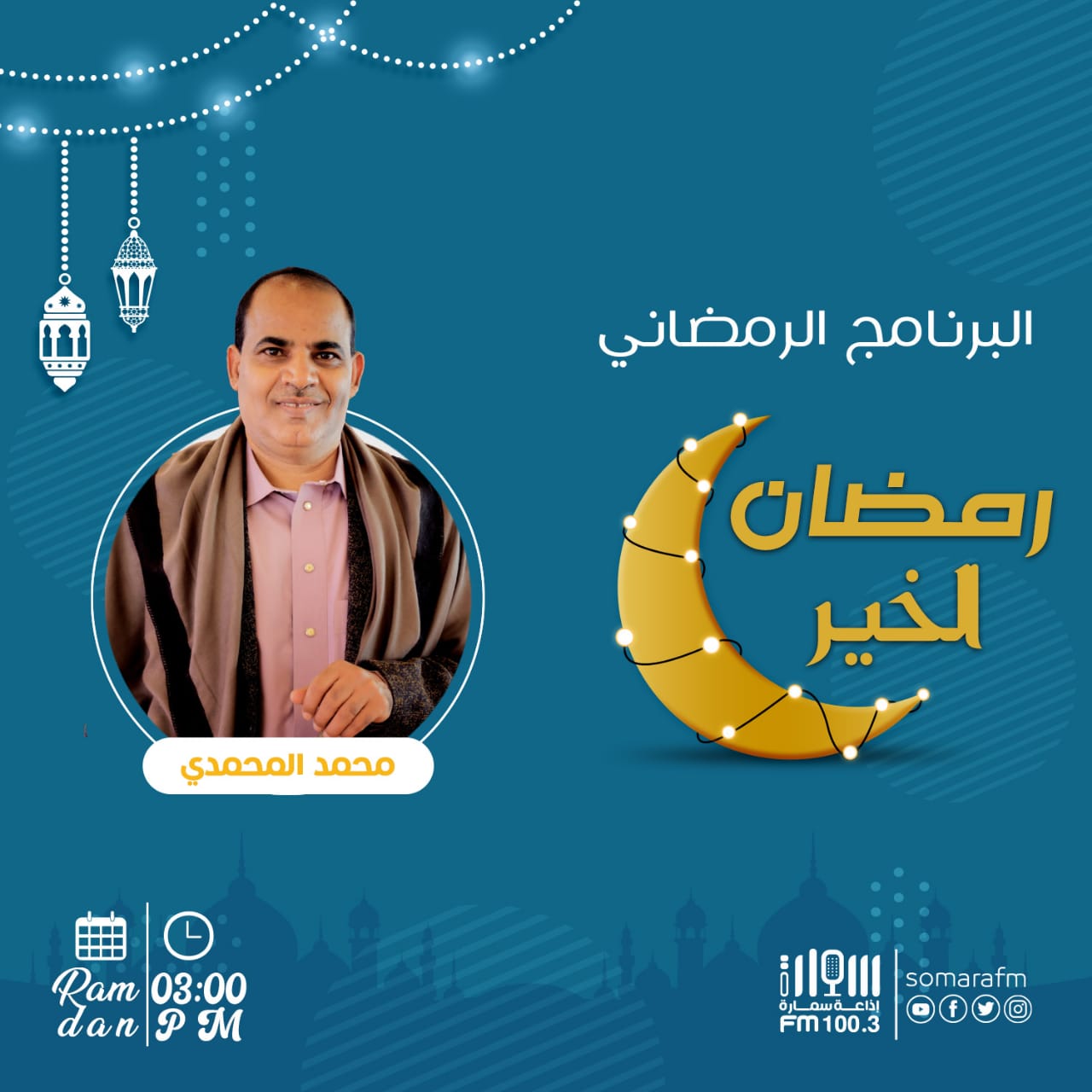 أعلنت اذاعة سمارة اف ام(100.3) اليوم عن تفاصيل الخارطة البرامجية للاذاعة خلال شهر رمضان المبارك لهذا العام 1444ه