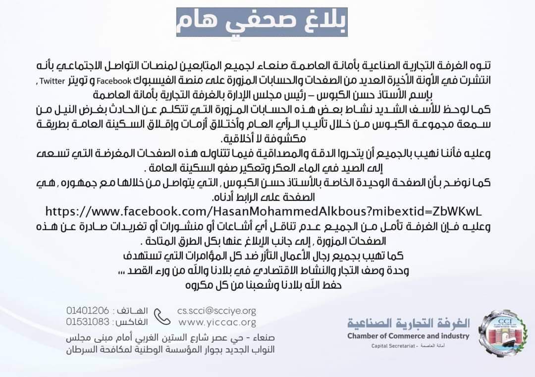 وأكد عدم امتلاكه أي حسابات أخرى على منصات التواصل الاجتماعي بخلاف حسابه الذي نشر عليه البيان، وأن أي حسابات أخرى تحمل اسمه أو صفته لا تمثله ولا تمثل اي شخص من مجموعة الكبوس التجارية .