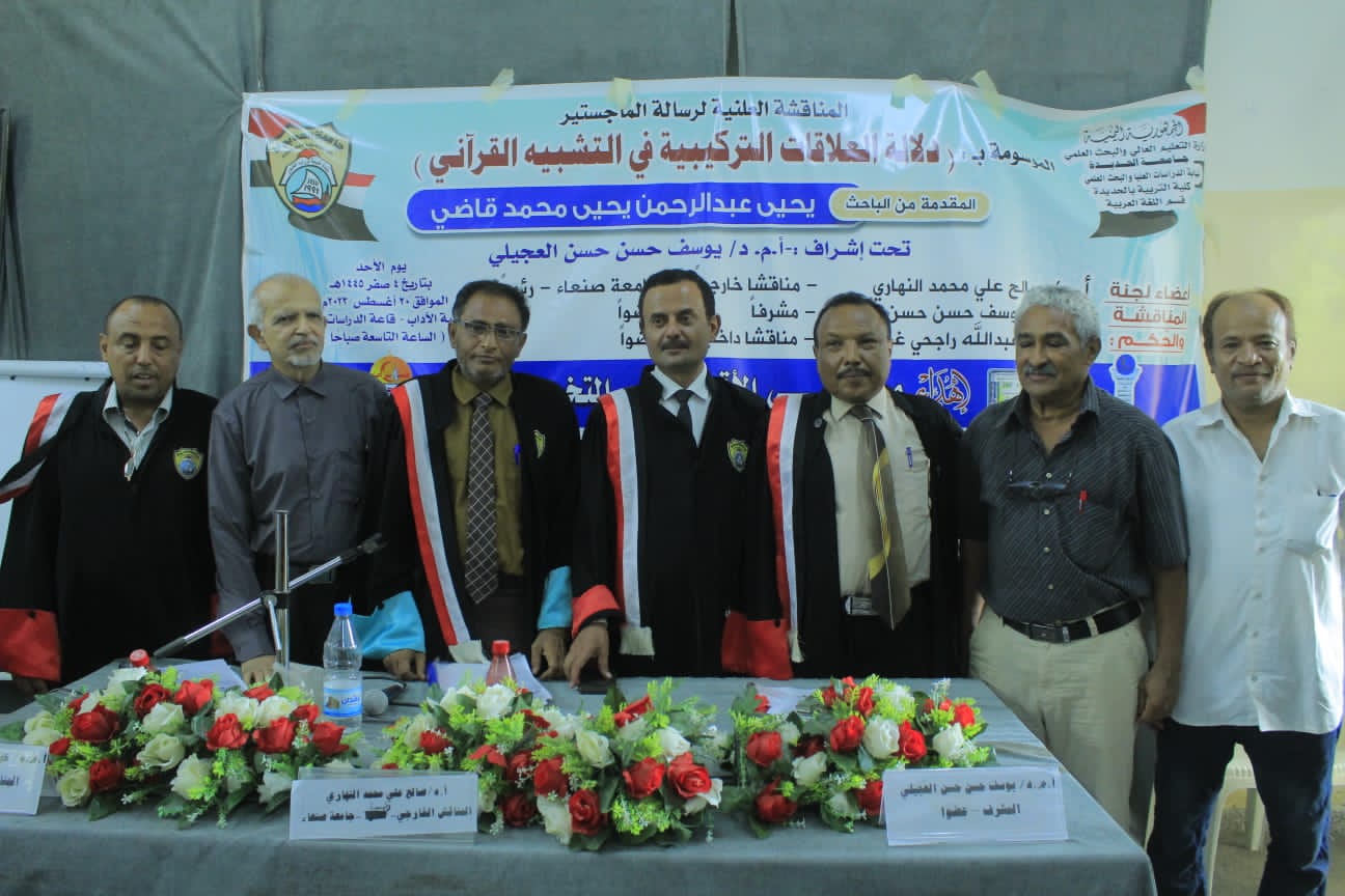 نال الباحث يحيى عبدالرحمن يحيى قاضي اليوم، درجة الماجستير بتقدير امتياز من كلية التربية – جامعة الحديدة عن رسالته الموسومة بـ”دلالة العلاقات التركيبية في التشبيه القرآني”.