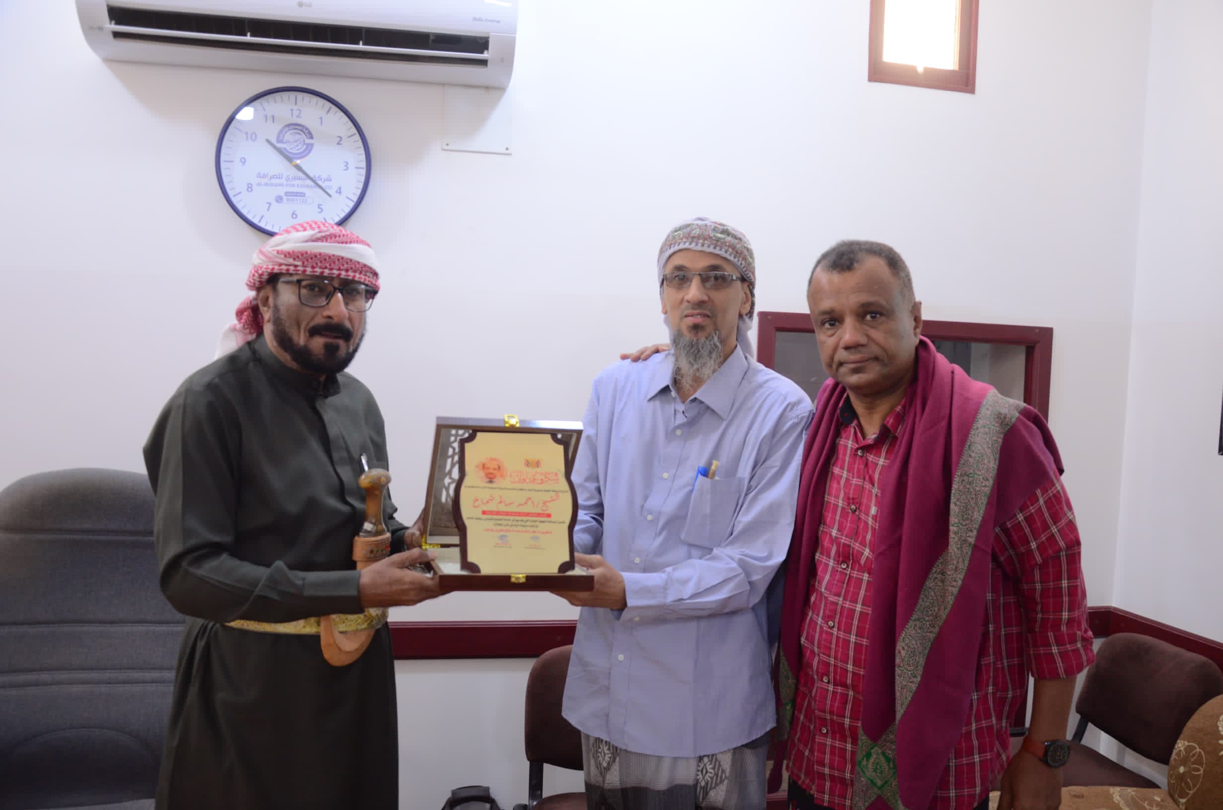 حيث قام مدير عام مديرية شبام حضرموت الاستاذ طارق طالب فلهوم ومعه الكابتن محمدعوض خراز ممثل الشباب والرياضة بالمديرية بتقديم درع تكريمي وتقديري للشيخ احمدسالم شماخ وذلك في مبنى السلطة المحلية في مديرية شبام وبحضور عدد من قيادات السلطة المحلية و مدراء المكاتب التنفيذية هناك.
