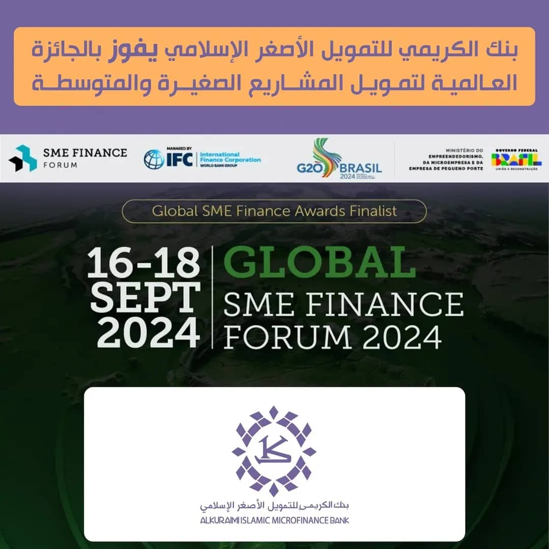 ومُنح بنك الكريمي، هذه الجائزة من قبل (منتدى المشاريع الصغيرة والمتوسطه (SME FORUME) التابعة لمؤسسة التمويل الدولية (IFC)، تكريمًا لفريق عمل البنك والتزامه العالي على كافة المستويات الإدارية بممارسات مهنية واحترافية واستثمار في بناء قدرات الكادر الوظيفي وتطوير الأنظمة التقنية بشكل مستمر متجاوزة كل التحديات والصعوبات بإرادة وعزيمة لا تلين ولا تقبل إلا النجاح والنجاح فقط.