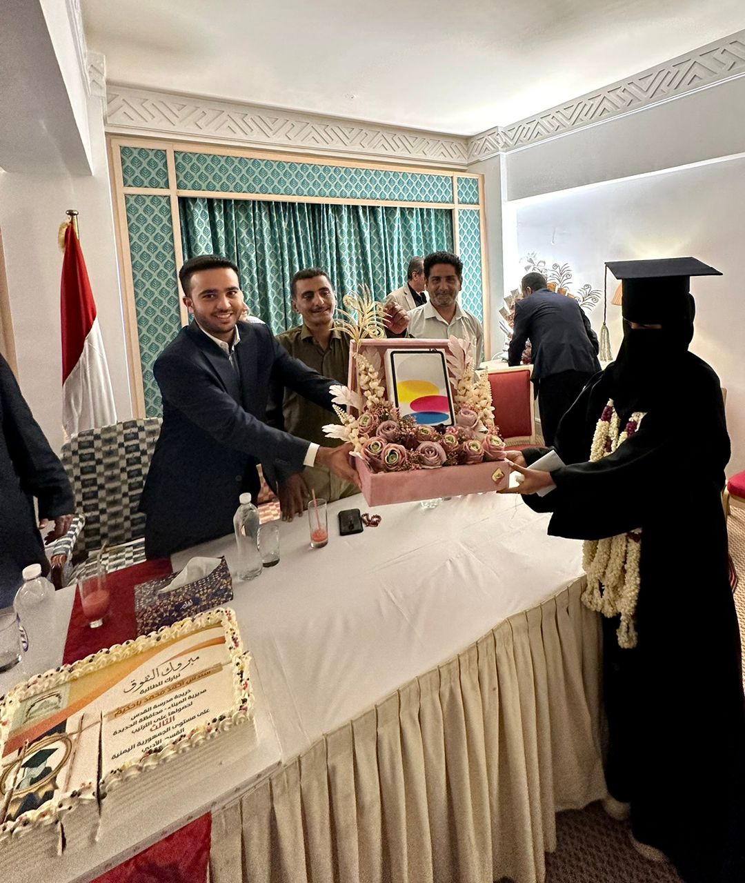 كرم رجل المال والأعمال الشيخ إبراهيم شعبين صباح اليوم الاربعاء الطالبة سندس أحمد محمد سالم باحكيم الحاصلة على المركز الثالث في الثانوية العامة على مستوى الجمهورية القسم الأدبي ممثلةً عن مدرسة القدس الاساسية الثانوية للبنات بمحافظة الحديدة  ..