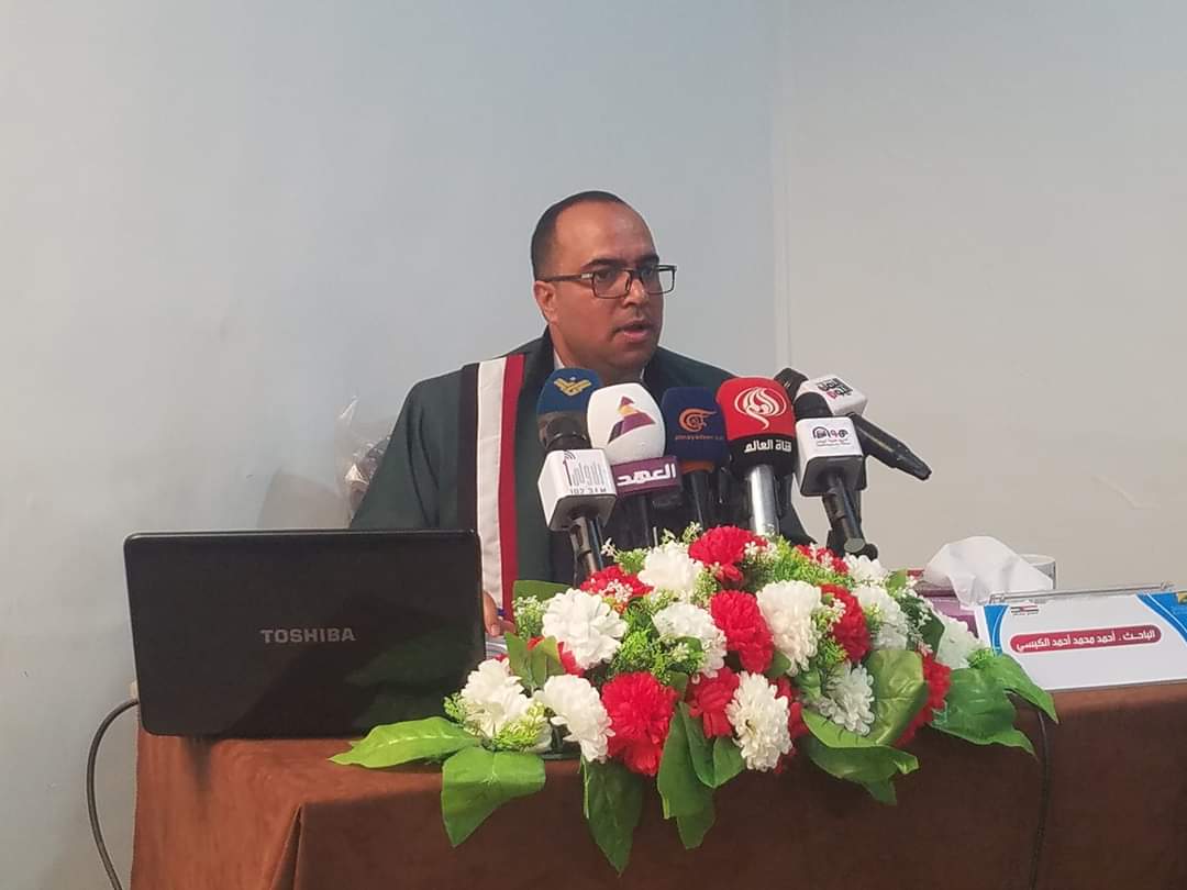 كلية الإعلام بجامعة صنعاء تمنح درجة الماجستير بامتياز للطالب أحمد الكبسي