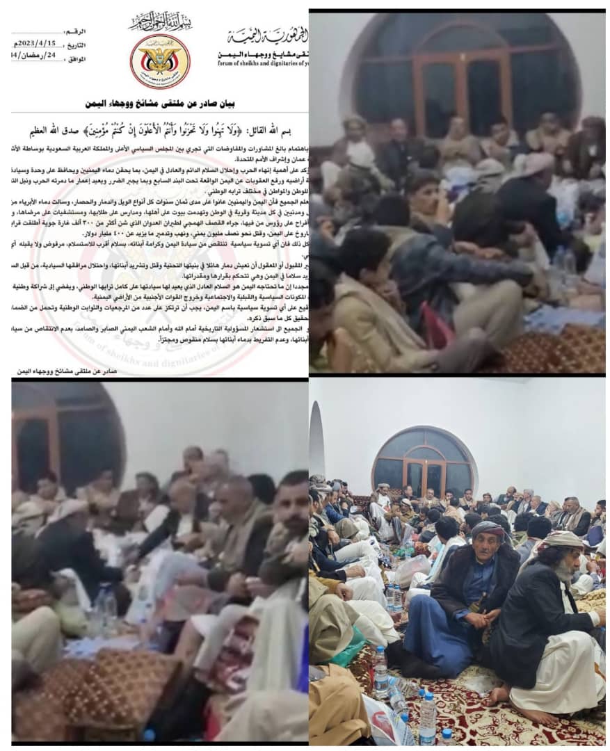 ملتقى مشائخ ووجهاء اليمن يدعو لسلام عادل ودائم وشراكة وطنية