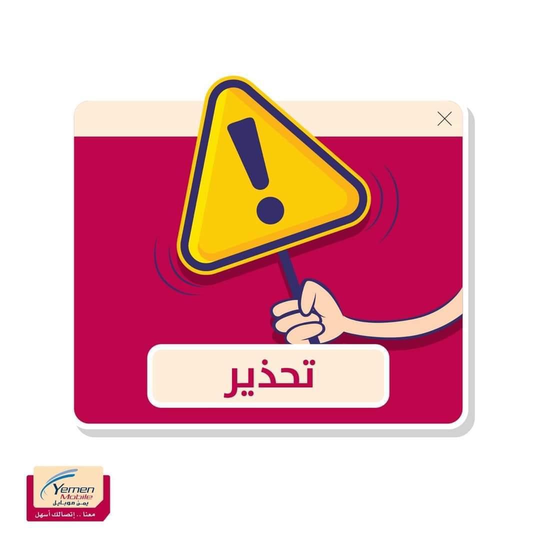 وفي حالة استلام أي رسائل أو روابط مشبوهة تدعي تمثيل شركة يمن موبايل، ينصح المشتركون بعدم النقر على تلك الروابط وعدم توفير أي معلومات شخصية أو مصرفية ، وفي حال شكوكهم أو وجود أي استفسارات، يمكنهم التواصل مع خدمة العملاء الرسمية لشركة يمن موبايل للتأكد من صحة الروابط أو المعلومات المتداوله.
